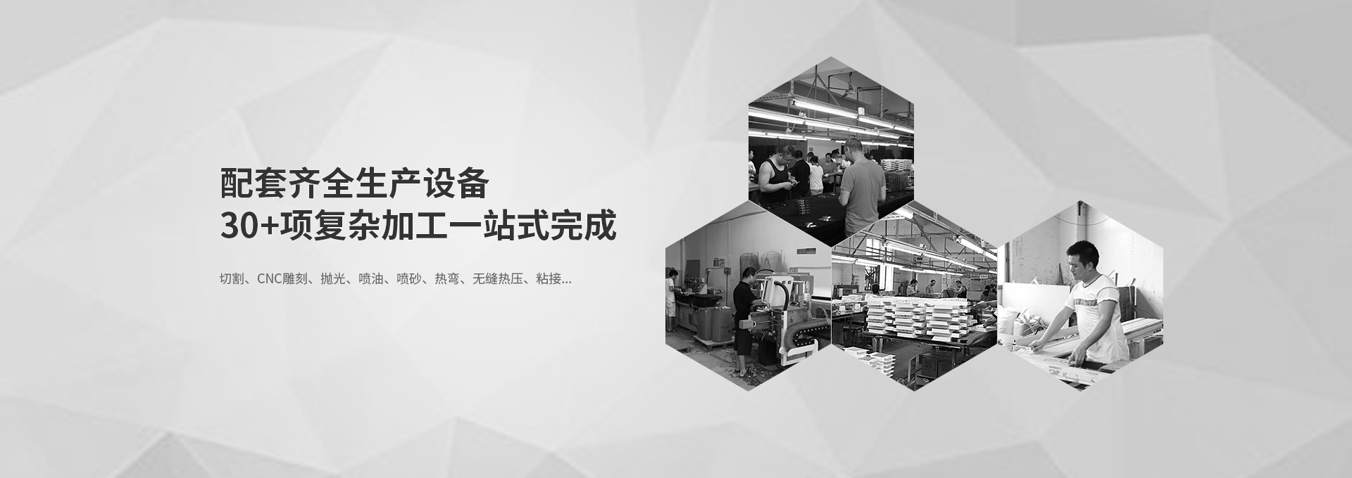 可提供切割、CNC雕刻、拋光、噴油、噴砂、熱彎、無縫熱壓、粘接等數(shù)十種加工工藝+客戶
